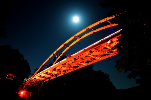 飯能河原の割岩橋をオレンジ色にライトアップします。