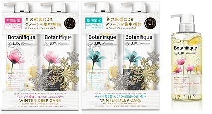 ユニリーバ・ジャパン・カスタマーマーケティング株式会社(本社:東京都目黒区、代表取締役 社長&CEO:高橋康巳)は、トータルビューティーケアブランド「LUX(ラックス)」のボタニカル ヘアケア シリーズ「Botanifique By LUX Premium(ラックス プレミアム ボタニフィーク)」(以下、ボタニフィーク)から、冬の乾燥ダメージをケアする冬季限定アイテム「ラックス プレミアム ボタニフィーク ウィンターディープケア ダメージリペア ポンプペア」、「ラックス プレミアム ボタニフィーク ウィンターディープケア バランスピュア ポンプペア」と「ラックス プレミアム ボタニフィーク ボタニカルウィンター ボディソープ」を2018年11月12日(月)より全国で発売します。