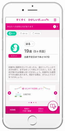 また、離れた地域に住む祖父母など家族との共有機能や、町が配信する地域の情報をお知らせするなど、新たなコミュニケーションツールとしても活用が期待でき、核家族化が進む若い世代にも安心して出産・子育てできる環境づくりの一助となることを願っています。