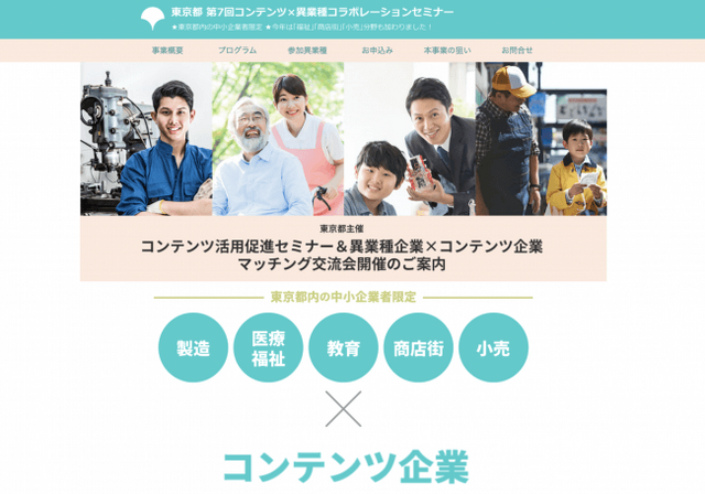 東京都には多くのコンテンツ産業が集積しています。 他分野の企業等がコンテンツ企業とのコラボレーションにより、お互いの製品やサービスの付加価値を高め、発展していくための牽引役となることを目指します。