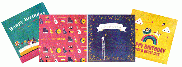 塚本ユージ先生による4つのカードイラスト(ケーキ/コンサート/星摘み/絵ポエム)の中から選ぶことができます。