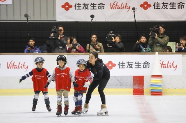 浅田真央さんは、スケート教室を行う中で、「今度はご家族一緒にスケートを楽しんでください。健康にも繋がりますので皆さんで運動をしましょう。」と、子どもたちにメッセージを送りました。
