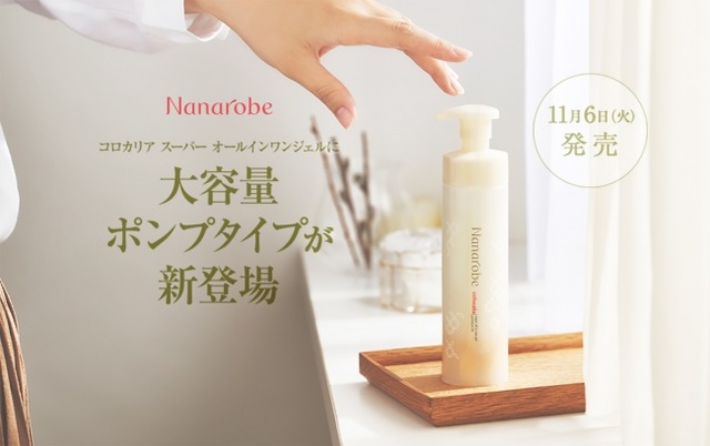 本製品は、116万人(※1)が実感した人気商品「コロカリア スーパーオールインワンジェル プレミアムソフト」をもっと 便利に、もっと続けやすくご提供したい。そんな思いから、大容量ポンプタイプを開発しました。ポンプタイプを採用する事で、キャップの開閉が不要になり、ジェルを片手で取り出せるためさらに使いやすくなりました。