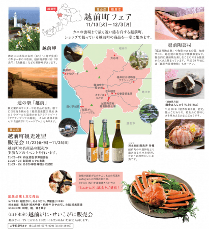 福井県のアンテナショップ「ふくい南青山291」で11月13日より越前町フェアを開催します。