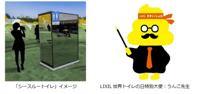 本イベントでは、屋外排泄を疑似体験することができるシースルートイレを設置するだけでなく、小学生を中心に人気を誇る「うんこ漢字ドリル」のうんこ先生を「LIXIL世界トイレの日特別大使」に任命し、世界の衛生課題に関するドリル「LIXIL×うんこ漢字ドリル うんこ先生と学ぶ!世界トイレの日特別検定」の配布を通じて、世界の衛生環境に目を向け、一緒に考える場となることを目指しています。