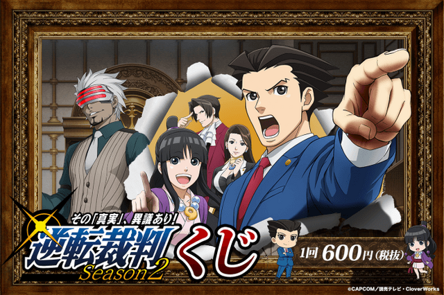 株式会社eStreamは、運営するオンラインくじサービス『eチャンス!』において、読売テレビ・日本テレビ系で土曜夕方5時30分放送中の「逆転裁判~その「真実」、異議あり!~Season2」のアニメ放送開始を記念して、アニメ「逆転裁判」のオンラインくじ(以下、逆転裁判くじ)を開始いたしました。本くじのA賞では、大人気声優の梶裕貴さん、悠木碧さん、ゲーム「逆転裁判」の生みの親、巧舟さんと一緒にアニメが観れる特別なチケットが当たります。