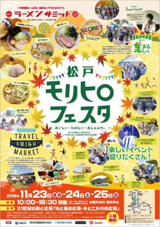松戸市は、広大な自然を活かし、親子で一日中楽しめるイベントをコンセプトに、11月23日(金/祝)~25日(日)までの3日間、21世紀の森と広場にて松戸モリヒロフェスタを開催いたします。
