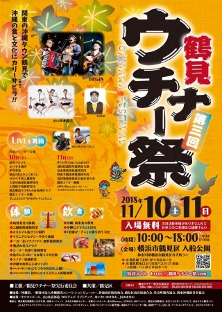 京浜工業地帯の一角に位置する横浜市鶴見区には、大正9年ごろから沖縄を中心に全国から職を求めて人々が集まりました。鶴見ウチナー祭は、そんな鶴見で開催する沖縄をテーマにしたお祭りで、2回目の開催である昨年は5万5千人の来場者が訪れました。今年は「BEGIN」さんなど沖縄に関連の深いアーティスト・団体を中心に、20以上のステージパフォーマンスが楽しめるほか、60を超える沖縄料理や沖縄文化の体験ブースが出店します。