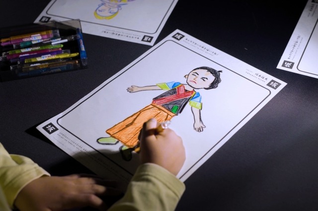 坂本龍馬や板垣退助など、土佐(現在の高知県)出身の偉人を紙に描くと、描いた絵がスクリーン上で動き出します。