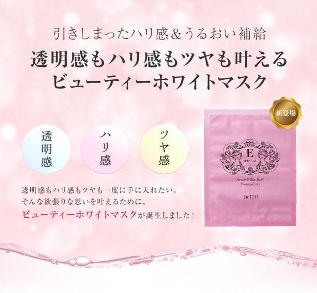 Dr.ERIが追求したのは、透明感、ハリ、うるおいと多機能的に働きかける欲張りマスクです。