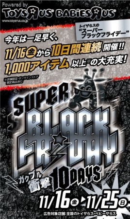 日本トイザらスは、「ブラックフライデー」セールを日本でいち早く全国規模で導入いたしました。今年は、当社史上最大規模の『スーパーブラックフライデー』セールとして、例年以上に同セールを盛り上げてまいります。