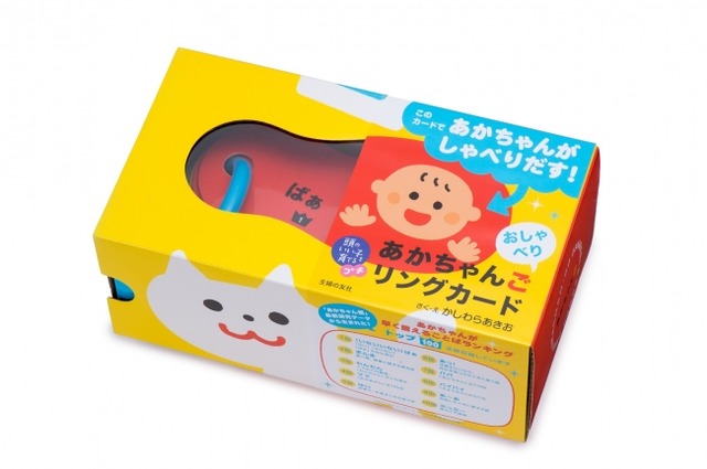 さらに、子どもの言語発達の専門家も語ります。「今までの絵カードは食べ物や動物などのカテゴリーや、あいうえお順の分類ですが、このカードは“赤ちゃんがしゃべりはじめる言葉の順”という切り口がとても新しい。お子さんのおしゃべりによく登場する、“あれ?”“あっ!”などの感嘆表現が含まれているところも新鮮です。楽しみながら自然に言葉を促すことができますね」(一般社団法人福島県言語聴覚士会会長/竹田綜合病院リハビリテーション科室長 阿久津由紀子先生談)。作・絵は、赤ちゃん本の殿堂入り『しましまぐるぐる』の作者、かしわらあきお先生です。