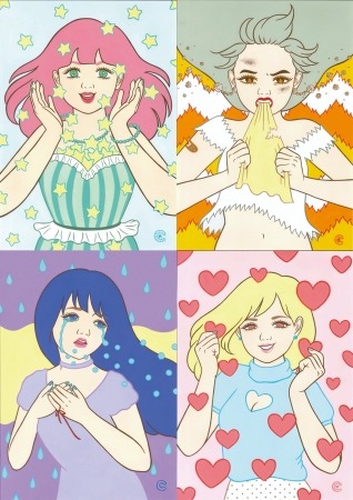イラストレーター 竹井千佳が今回の企画の為に書き下ろした作品「喜」「怒」「哀」「楽」を用いた4種類ボックスで販売致します。