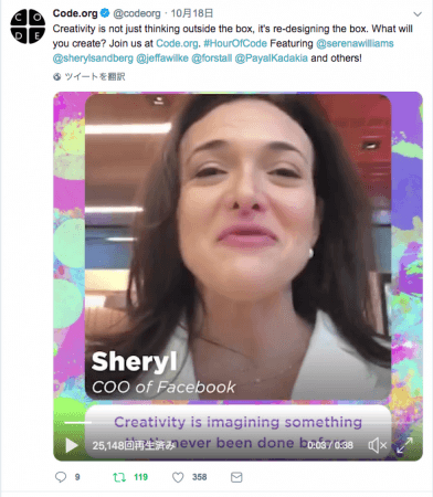 なお、「Hour of Code」の発祥の地である米国では、Microsoft 創始者のビル・ゲイツ氏やFacebook COOのシェリル・サンドバーグ氏をはじめ、IT業界の著名人が動画を通して、本活動に賛同・参加しております。