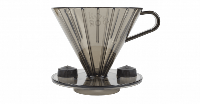お湯の速度の精度を高めるため、細かい形状をより精密に出せる耐熱プラスチックを採用。カラーはスモークブラウンで、インテリアともマッチする高級感のあるデザインにこだわりました。フィルターペーパーは、HARIO V60 02サイズをお使いください。