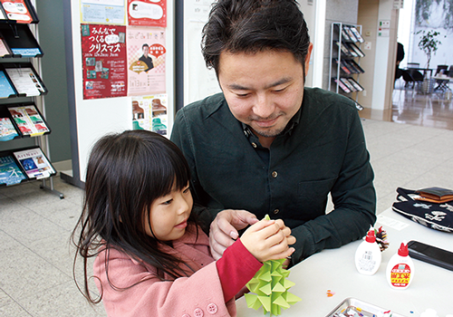 「みんなでつくるあったかクリスマス」は、今年で10年目を迎えるワークショップです。ツリーに吊したり、窓辺に置いて楽しめるクリスマス飾りをつくります。
