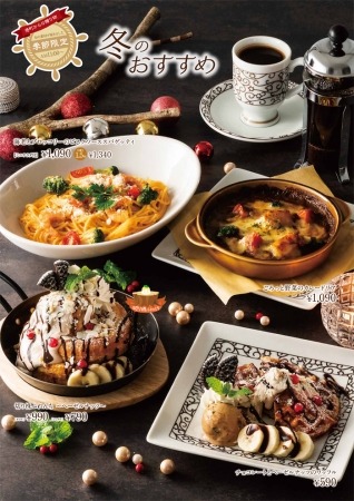 『伝わるおいしさ』をテーマに、寒い冬の定番クリームパスタ『海老とブロッコリーのビスクソーススパゲッティ』をはじめとした冬と喫茶の定番を集めたお食事メニューと