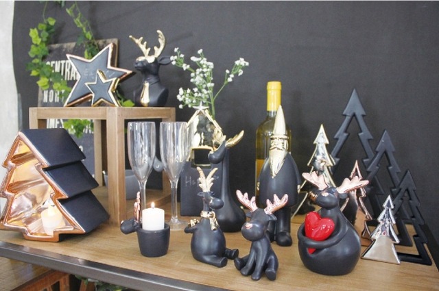 でも来週は、大人だけで夜語り合うパーティだから、少し落ちついた雰囲気にしたい。クリスマスカラーとして使うことなんて思いもしなかった「黒」とゴールドの異色の組み合わせの陶器を見た時、思わず引き込まれました。このクリスマスオブジェ「マチュア」を置くと、そこからゲストをお迎えするクールでシックなテーブルコーディネイトなどのアイデアが広がっていきます。