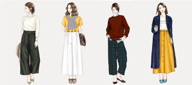 2018年のシーズン毎の販売点数ランキング上位には、Tシャツやスキニーパンツ、ジーンズなどの定番アイテムや、シーズン毎にトレンドとなった商品が多数ランクインしました。シーズン毎の人気商品を取り入れたコーディネートをイラストで発表します。