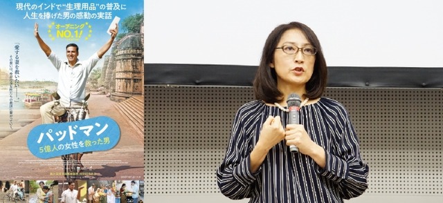 さらに「この映画のように生理がタブー視されるのは発展途上国だけではありません。先進国でも生理の話題はしないし、ニュースにもならず、政策課題にもあがりません。イギリスのような国でも低所得者は生理用品が買えず、他の物で代用している人たちがいます。日本は生理用品の普及率は100%ですが、東日本大震災の教訓として、防災の備蓄や支援物資に生理用品やおりものシートが不足していたということがあります。生理についても、性行為の同意についても、男女のパートナーシップが対等でわかりあえるような性教育も大事だと思います。最近、自分の中にもバイアスがあることに気づかされました。息子が食事中に、私と娘の前でガールフレンドの生理が重くて貧血をおこしたので駅長室まで抱きかかえていったという話をしたのですが、びっくりしてしまいました。また、テレビ番組の中で、熊本の被災地で不足していたものは何かという質問に、私が答える前に、男性のコメンテーターが「生理用品」と先にこたえてくれたことにも驚きました」と改めて現代社会での“生理”の現状ついて語りました。