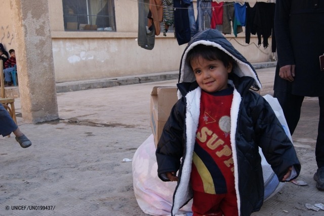 この冬、ユニセフはシリア、イラク、ヨルダン、レバノン、パレスチナ、トルコ、およびエジプトの子どもたち130万人に対して、暖かい服と毛布の提供や、水と衛生および保健分野での支援、また家族には現金給付支援をする予定です。ユニセフの越冬支援は、現在行っている保健、栄養、水と衛生、子どもの保護、教育分野におけるプログラムを補完するもので、地域全体の弱い立場にある子どもたちを寒さから守り、健康に、学校に通えるようにすることを目的としています。