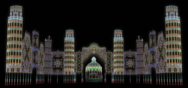 東遊園地の南側・噴水広場には円形状の「スパッリエーラ」を配置します。噴水広場の作品は音楽に合わせて光が躍動し、夢のような楽しい会場を演出します。