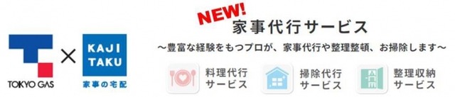 東京ガスは、これまでも家事支援事業者の株式会社カジタクと提携し、【ハウスクリーニング】や【宅配クリーニング】のサービスを提供してきましたが、お客さまからの「もっと手伝って欲しい!」という声にお応えするため、このたび【料理代行】【掃除代行】【整理収納】の3つの新しい家事代行サービスを追加しました。[画像5: https://prtimes.jp/i/21766/237/resize/d21766-237-896863-12.jpg ]