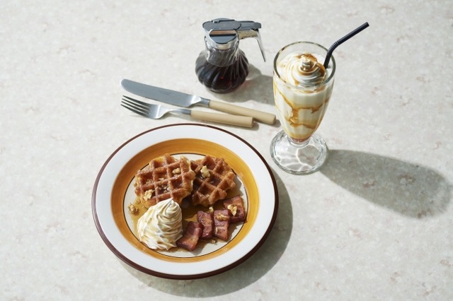 写真:メープルワッフルプレート シェイクセット 1000円(税抜)