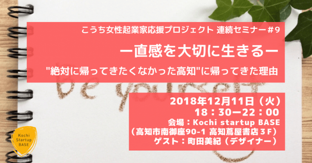 【こうち女性起業家応援プロジェクト連続セミナー#9 『直感を大切に生きる “絶対に帰って来たくなかった高知” に帰って来た理由』実施概要】