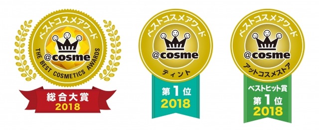 その結果、化粧品クチコミサイト@cosmeで、ベストコスメアワード2018 総合大賞・ベストティント 第1位・@cosme storeベストヒット賞 第1位を受賞。