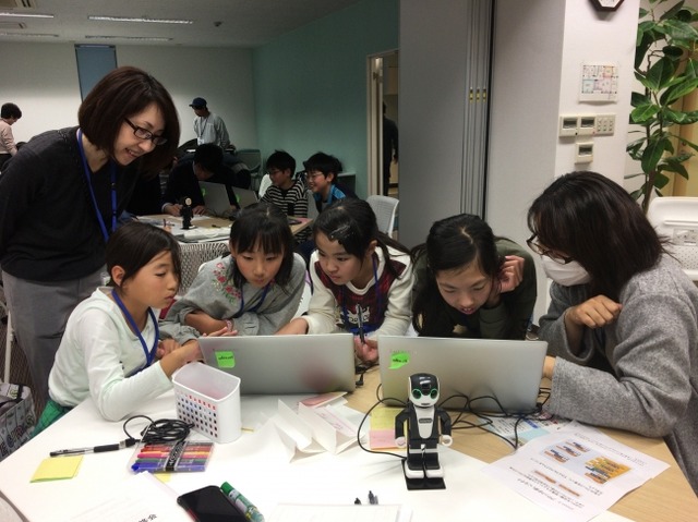 ★11月25日~12月13日(※日曜日,また,水曜日と木曜日の放課後) 児童生徒がメンターからプログラミングを学び,商店街のニーズを踏まえて実際にコミュニケーションロボットをプログラミングしています。