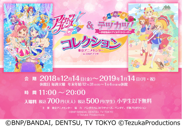 東京アニメセンターin DNPプラザは、2018年12月14日(金)から2019年1月14日(月・祝)まで、TVアニメ/データカードダス「アイカツ!シリーズ」が一挙に集結する企画展『アイカツフレンズ!& テヅカツ! コレクション』を開催します。