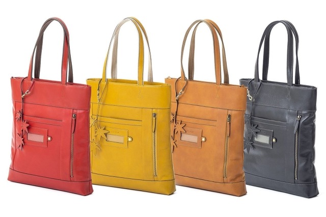 京都の紅葉の色をイタリアの技術と感性で再現した発色が自慢のレザートート。ガジェット類の収納に