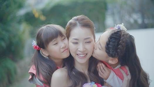 嬉しそうな笑顔で、子どもたちが母と触れ合っている様子で、ムービーは終わります。