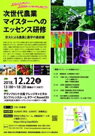 「本やネットでは学べない!」、「京大研究者にその場で質問・相談できる!」という講座ですので、最新の農業・農学にご関心のある方のご参加をお待ちしております。