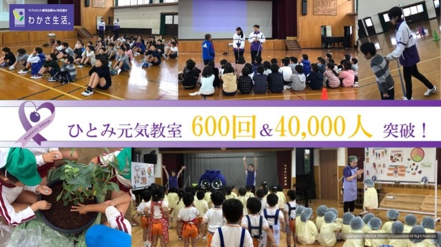 株式会社わかさ生活の社会貢献活動の一環で、小学校・幼稚園などを対象に目の大切さを伝える「ひとみ元気教室」。このたび、累計開催回数600回を突破し、参加した児童数は40,000人を超えました!