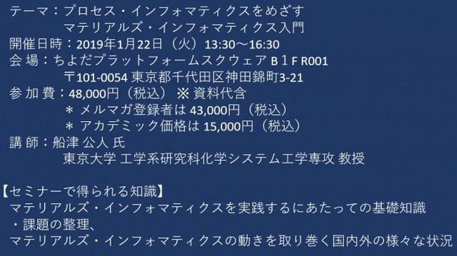 テーマ:プロセス・インフォマティクスをめざすマテリアルズ・インフォマティクス入門