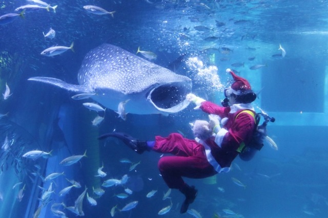 『横浜・八景島シーパラダイス』では、12月15日(土)~25日(火)の期間限定で、サンタクロースに扮したダイバーが東日本唯一の展示である世界最大の魚「ジンベエザメ」にクリスマスプレゼントを贈る、クリスマスならではの水中でのフィーディングイベントを開催いたします。