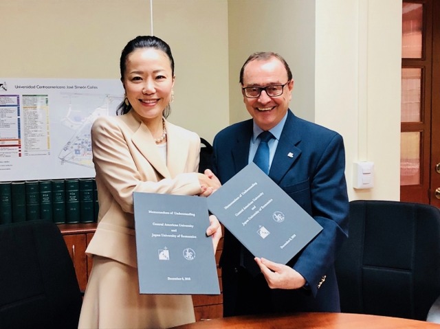 日本経済大学(所在地:福岡県太宰府市、学長:都築 明寿香)は、2018年12月8日(土)~9日(日)に、学長自ら、中米の玄関口ともいわれるエルサルバドルを訪問し、現地エルサルバドルと日本の架け橋となるために、ホセ・シメオン・カーニャス中米大学(UCA)との学術協定の締結いたしました。同時に、経済活性化政策である「一村一品運動」を牽引するエルサルバドル政府国家小零細企業庁(CONAMYPE)長官と共に、現場の視察を行いながら、同国人材育成に貢献すべく、エルサルバドル「一村一品運動」の若手リーダーを対象とした奨学生プログラムに合意いたしました。
