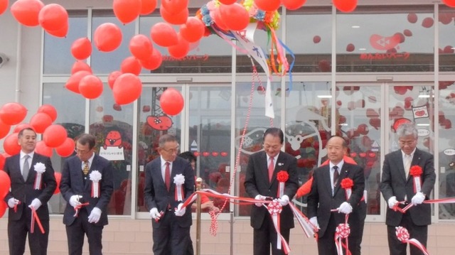 オープニングセレモニーでは函南さくら保育園の園児たち29名による合唱で式典がはじまり、続いて仁科喜世志 函南町長が、めんたいパーク伊豆のオープンで「海の幸、山の幸、里の幸がそろった」と祝辞を述べました。