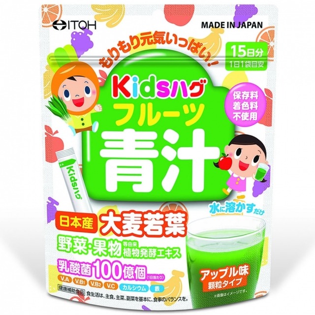 健康食品をはじめ医薬品、医薬部外品などを製造・販売する井藤漢方製薬株式会社(本社:大阪府東大阪市、代表取締役社長:井藤竜生)は、国内産大麦若葉末を配合した水に溶かして飲む顆粒タイプの、子供向け栄養サポートサプリメント【キッズハグ フルーツ青汁】を、2018年12月10日(月)より新発売いたしました。