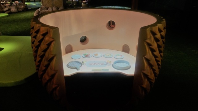 「はらぺこキッチンは、プレート上で食材を切る、焼く、混ぜるといった調理から盛り付けまで体験できるもので、「はらぺこキッチン」をより魅力的なアトラクションにするために、ザイトロニックのタッチスクリーン技術は、まな板の下に設置し、包丁や手のひらのセンシングに使用されています。