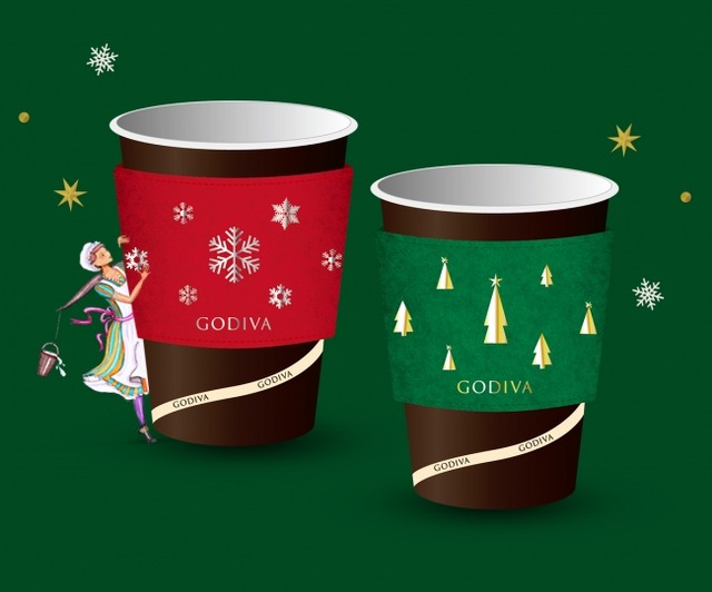 ゴディバが「One of Loveプロジェクト」を通して支援活動に参加するために作った「クリスマス チャリティースリーブ」は、ゴディバ人気チョコレートドリンク「ホットショコリキサー」のカップサイズ(直径最大8cm)で、レッドとグリーンの2種類をご用意しました。