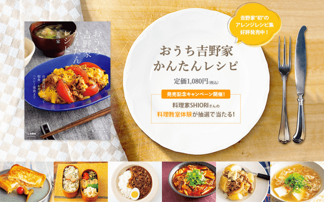 料理家SHIORIさんがメニュー作成した書籍『おうち吉野家かんたんレシピ』。