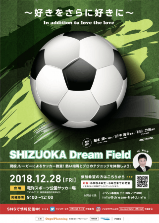 株式会社ウップスプランニング(本社:愛知県名古屋市、代表取締役:長村行記)は、Jリーガーによるサッカー教室!「SHIZUOKA Dream Field」を2018年12月28日(金)に開催致します。