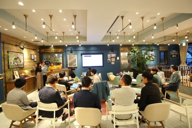 (プレゼンテーションの様子、インターン参加者と運営・人事担当者)
