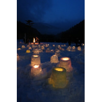 雪化粧に染まった山々に囲まれ、澄んだ空気、まだ誰の足跡もない新雪での雪遊び、満点の星空、囲炉裏体験…