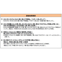 子どもがいる親世代に聞いた「年末年始の習い事アンケート」2018年に話題になった子どもの習い事、2019年にさせたい習い事の第1位は、どちらも「プログラミング教室」に