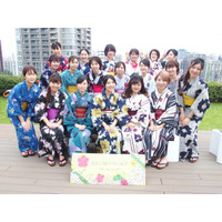 “Watch out for heatstroke”-浴衣姿の学生が、外国人観光客に英語で熱中症予防を訴える。 跡見学園女子…