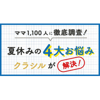 ハードな夏休み中のママ1,100人に聞いた”夏ならではのお悩み”解決策4選をクラシルが発表!